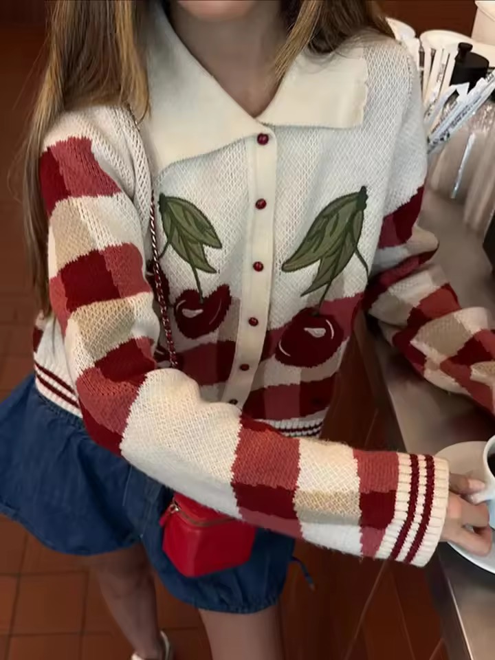 Este es un saquito que roba miradas… Tejido suave hecho en algodón, cómodo y con un diseño muy cool de cerezas bordadas que le da ese toque vintage que eleva cualquier look.