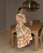 Vestido largo, estampado, cierre de botones frontales. Es un vestido precioso que puedes usar también como kimono, incluye el cinturón.